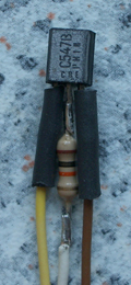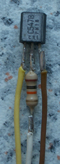 So you only need any NPN transistor, (I used an BC547 here) and one resistor.